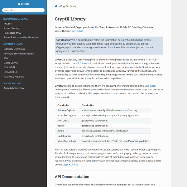 A technical document offering comprehensive API documentation tailored for developers of all experience levels, alongside an in-depth cryptanalysis of the CryptX library for peer review.